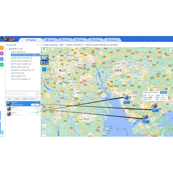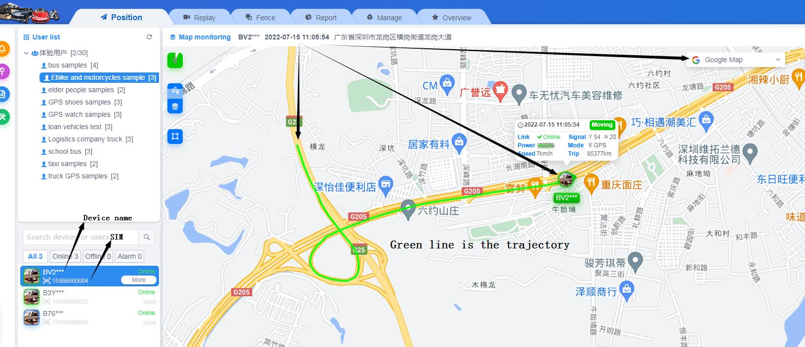 | Geo-fence Alarm | users can set a range of geo-fence on map with circle, polygon or customize shape, and it will alarm when the device gets in or out of preseting range via APP or SMS. |
